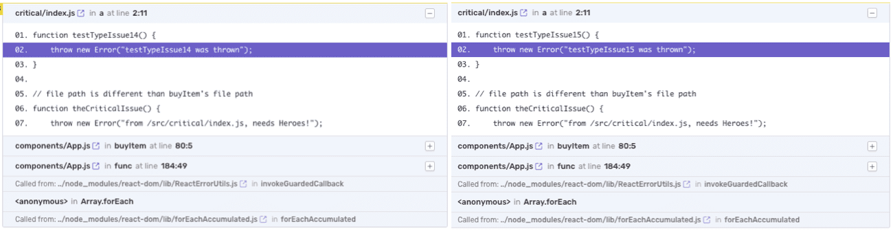 Sometimes two stack traces are the same function execution path but differ by one or more frames corresponding to code in middleware, third-party libraries, or the framework itself. Sentry will automatically try to detect and ignore such frames, but this is also configurable. See Stack Trace Rules.