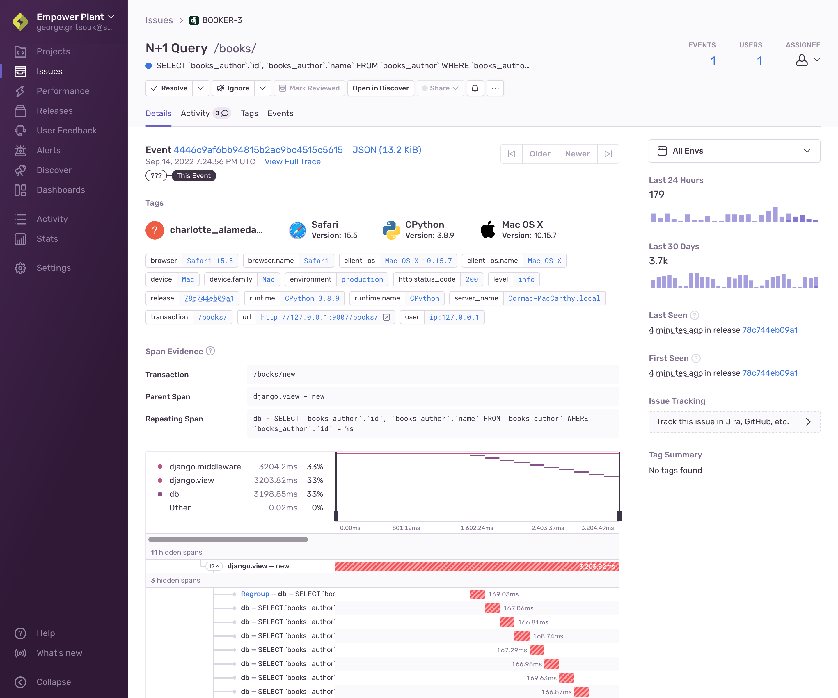 Learn more about which performance issues Sentry detects and how to use the Issue Details page to debug them.